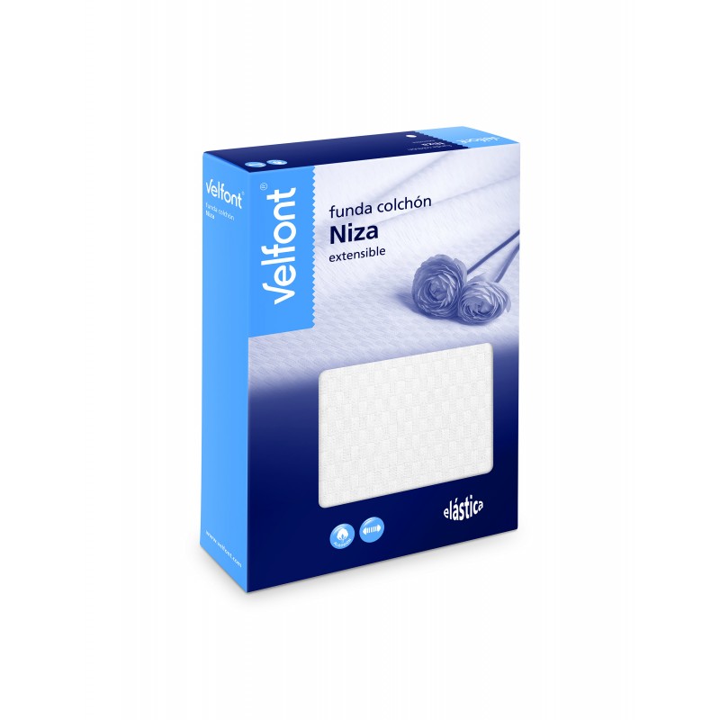 La funda de colchón Niza de Velfont está confeccionada con algodón que, combinado con el elastano, le proporciona una gran elasticidad y adaptabilidad a un tejido natural y altamente transpirable.
