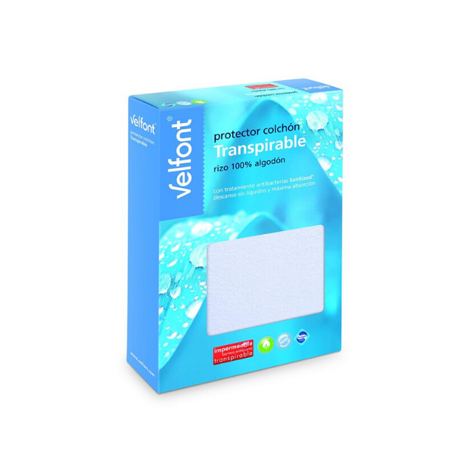Este protector de colchón combina una total impermeabilidad con un alto grado de transpirabilidad y absorción. El protector colchón Velfont Rizo Transpirable se adapta a largos de colchón de hasta 200 cm y puede asumir alturas de colchón de hasta 30 cm gracias a su platabanda de rizo 100% algodón altamente absorbente.